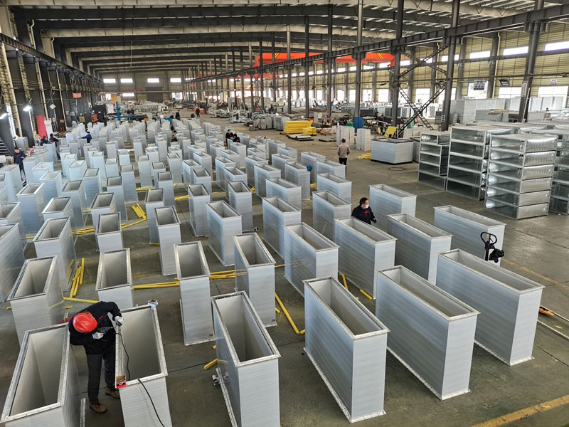公司引進(jìn)了多臺(tái)先進(jìn)全自動(dòng)化生產(chǎn)線(八線、六線、五線、三線、二線)、激光切割、角鐵自動(dòng)焊接、數(shù)控機(jī)床、鎂質(zhì)板雕刻機(jī)、覆板機(jī)等機(jī)械化生產(chǎn)設(shè)備。在生產(chǎn)制作中不僅提高了生產(chǎn)效率,同時(shí)提升了風(fēng)管的質(zhì)量,通過對(duì)風(fēng)管壓筋和連接工藝的改變使風(fēng)管具有強(qiáng)度高、質(zhì)量好、更節(jié)能、更健康、更安全、更耐用、更便捷、更美觀等特點(diǎn)。